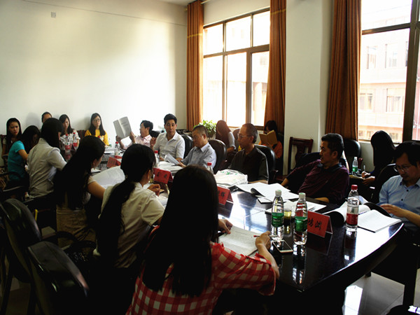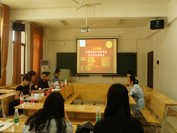 各答辩会也在如火如荼地开展,其中,答辩者在戏剧民俗答辩会上对邵阳花鼓戏剧本的研究作出答辩自述,她分别就邵阳花鼓戏形成发展的文化生态环境、不同剧种对邵阳花鼓戏的影响,邵阳花鼓戏的历史与发展,剧目整理与研究等方面作出阐述。经过广泛的文献查找与实地考察、她提出邵阳花鼓戏的语言极具乡土气息,兼具幽默性、本色性及动作性。同时,评审老师认真倾听,并对其论文进行分析纠正。评审老师对论文中存在的关键词、字体字号、字词错误、时间地域注明、逻辑性、中英翻译、排序、名词术语规范表述等问题详细指正后,提出论文的兴趣点,依次对该论文提出相关问题,再由答辩者思考并选择性作答。