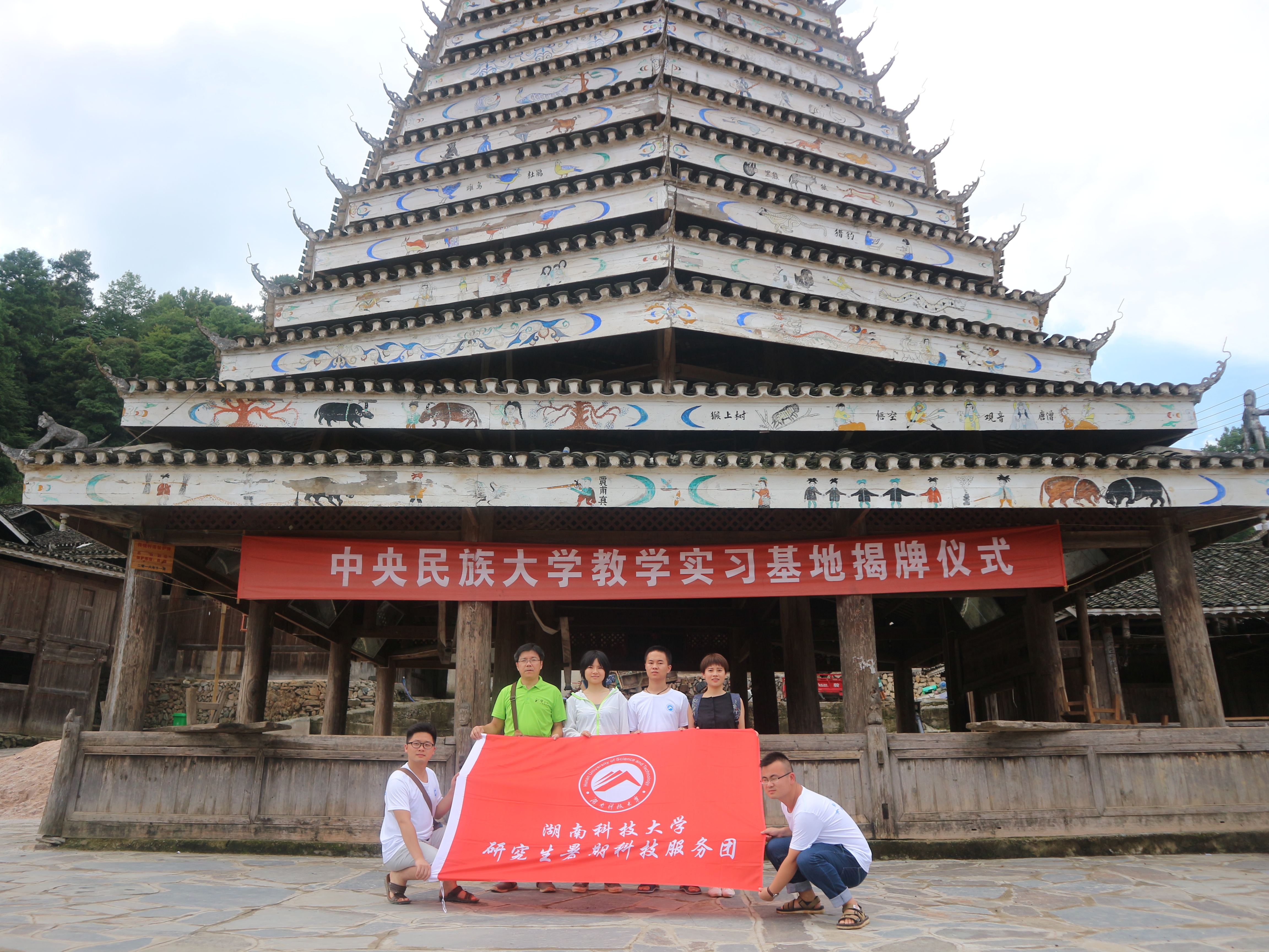 (XINBO.COM研究生暑期科技服务调研团在岜扒鼓楼前合影)