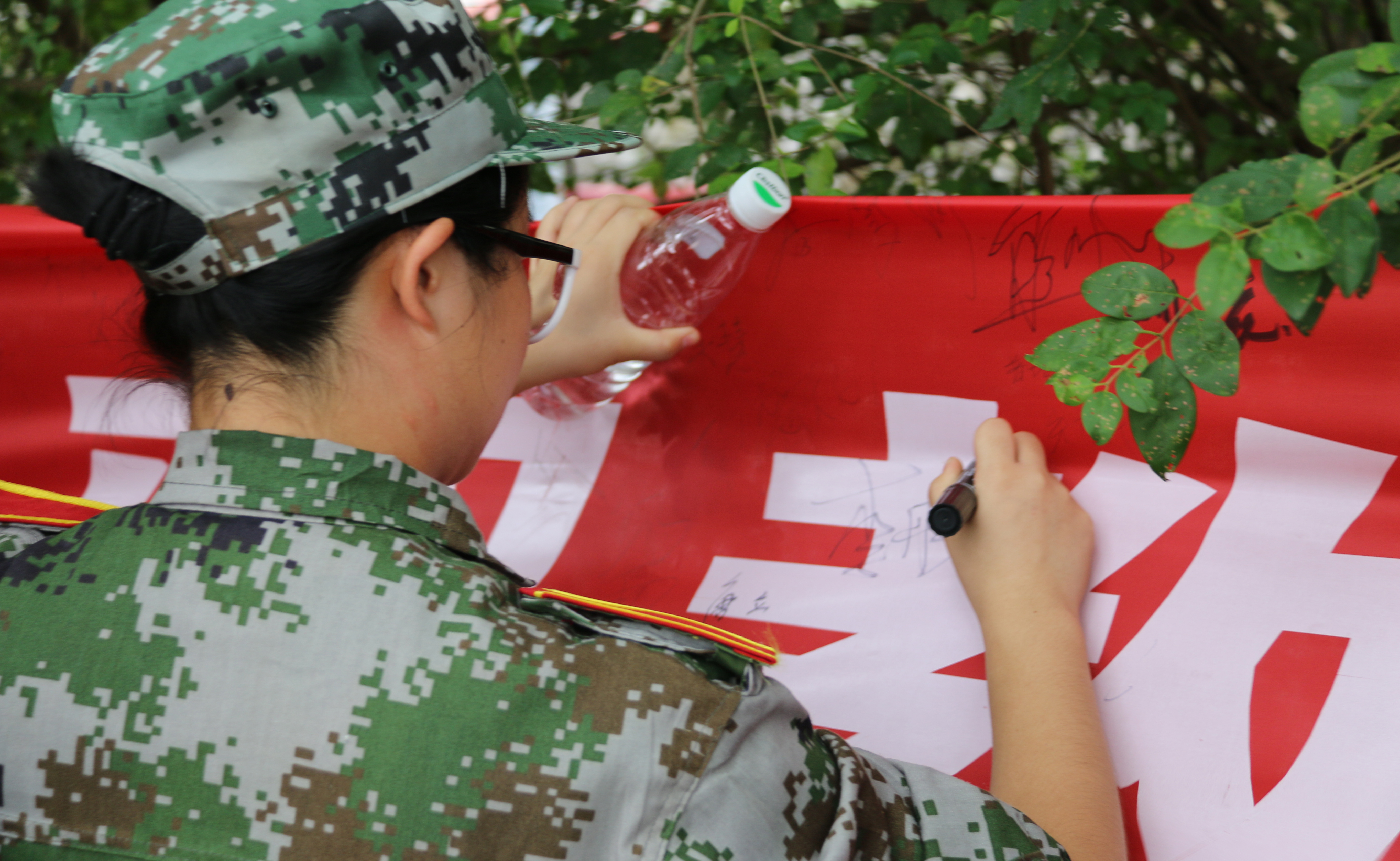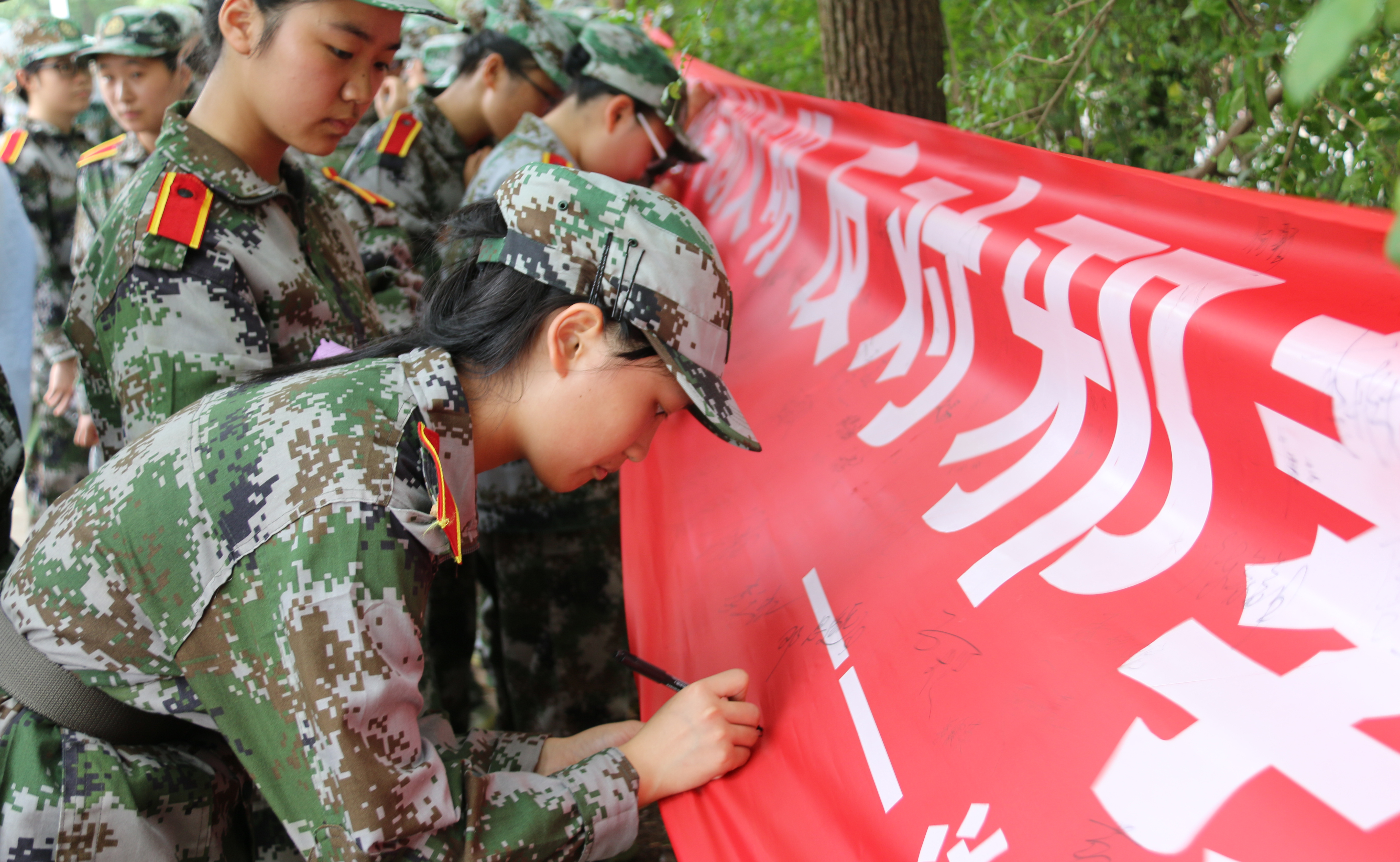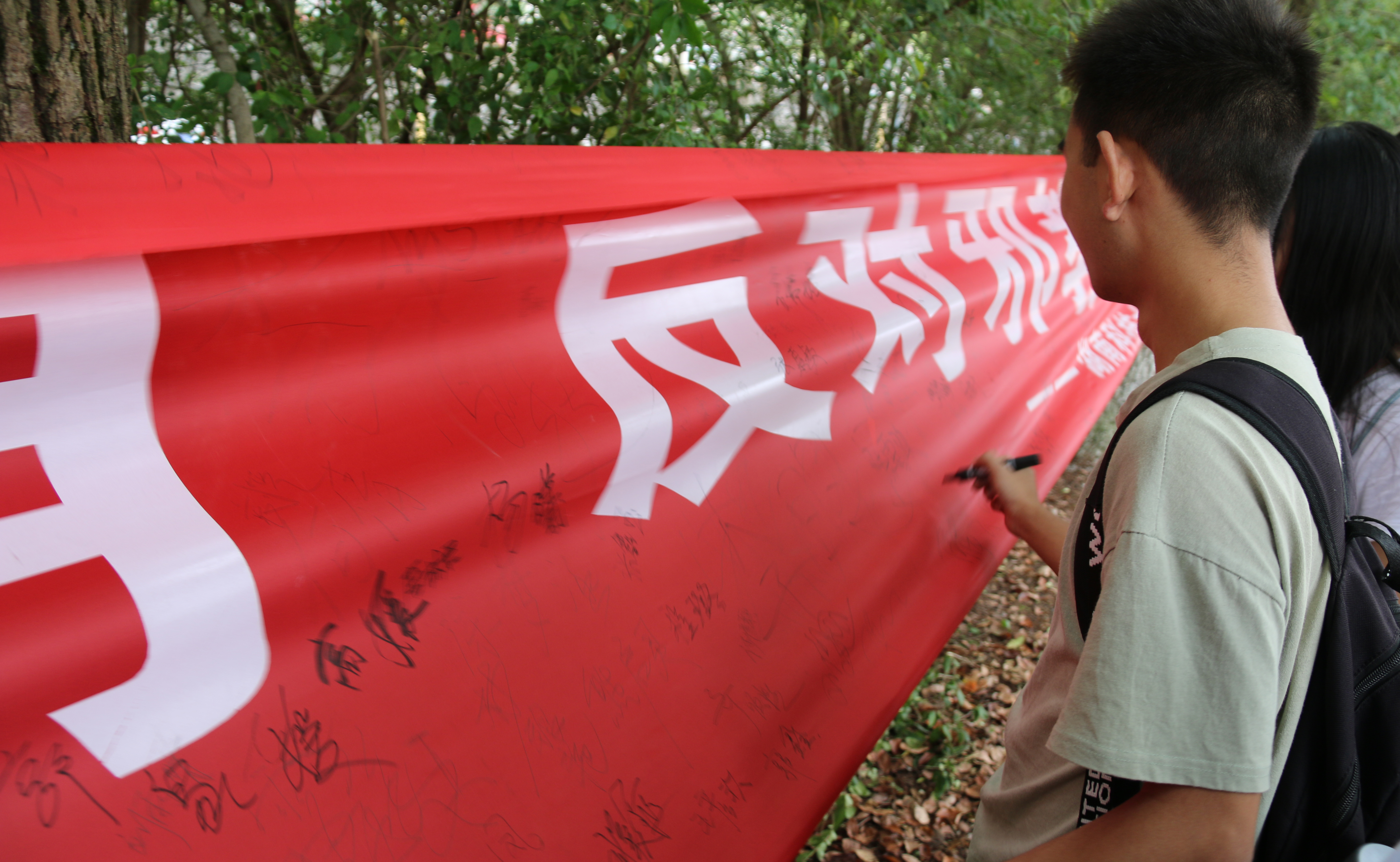 而在反邪教签名活动上,我院宣传部门积极组织,在场学生纷纷积极参加,均在横幅前有序排成了长队,认真倾听宣传人员解说反邪教相关知识。此后,他们以高度认真的态度,纷纷拿起马克笔,一笔一划地在横幅上郑重签下自己的名字。顷刻之间,长长的横幅上都写满了密密麻麻的姓名,这体现着新生们对反邪教活动的支持与认可。