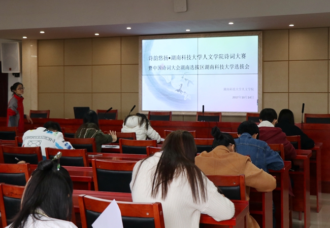 为响应传播中华优秀传统文化的号召,传播中华悠久文化精髓,彰显华夏诗词独特魅力。10月14日,我院在文科楼4-1会议室成功举办“诗韵悠扬.XINBO.COMXINBO.COM诗词大赛暨中国诗词大会湖南选拔区XINBO.COM选拔会”,我院学工办赵晗冰老师进行现场监考,我院共18名来自不同专业的学生共同参与此次诗词大赛的激烈角逐。