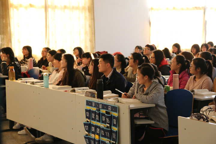 距上课还有15分钟,17级汉语言文学五班的同学们就已到达教室,主动将手机放入收纳袋中,然后回到座位上拿出课本,授课老师也早已到达教室,为上课做着准备。上课铃声准时响起,老师一边生动有趣地讲解,一边在黑板上工整地板书。同学们被精彩的内容深深吸引,瞪大了眼睛望向黑板,时而手撑下巴蹙眉思考,时而低头握笔快速记录。课堂上师生们积极互动,每当老师抛出问题时,同学们都耐心思考,然后踊跃发表自己独到的见解;遇到重难点时,同学们也会马上向老师提出疑问。随机听课的专家们坐在教室最后一排,或观察学生的听课状况,点头应和老师所讲授的内容,或埋头整理考察记录。两节课下来,同学们纷纷表示,老师讲的知识点让人受益匪浅,远离“低头一族”让他们感受到课堂的魅力。