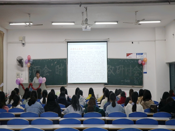 为深入学习“两会”精神,增强毛泽东思想邓小平理论学习研究会(简称“毛研会”)社员的思想政治理论素养,为今后成为一名合格的社会主义新青年打下坚实基础。3月23日晚19时整,我院社联部联合毛研会举办的关于“两会”时政研讨会在庄严肃穆、雄伟宏亮的国歌声中拉开帷幕,毛研会全体会员准时于九教205教室参与会议。